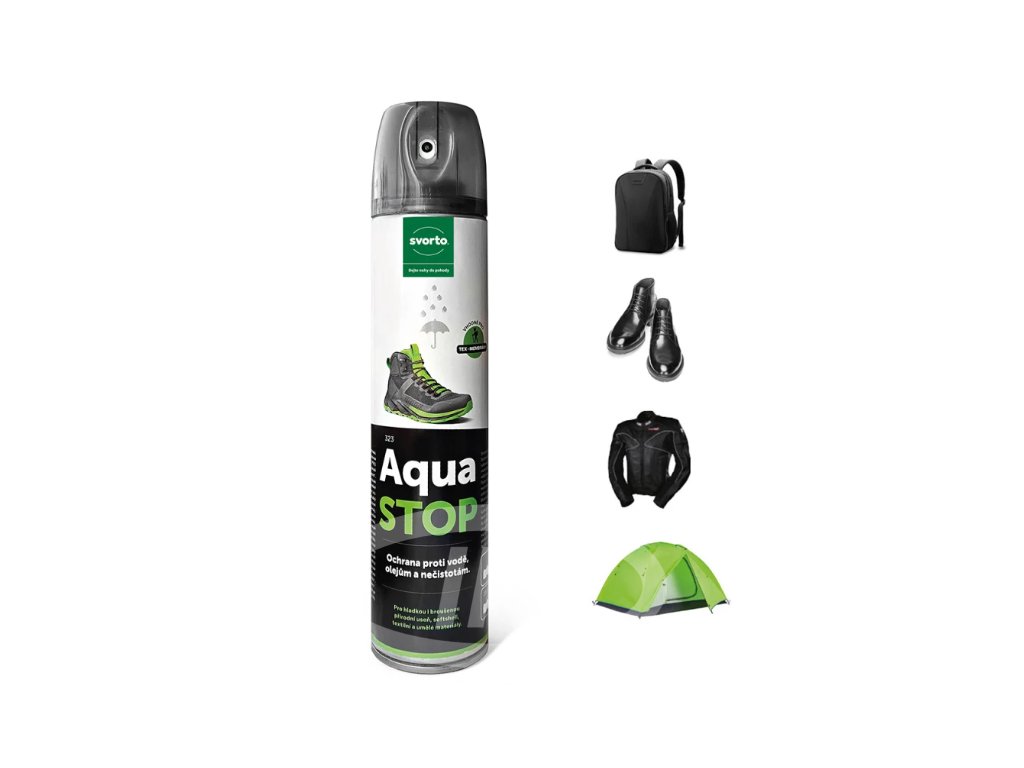 Aqua stop 300 ml nesnižuje propustnost pro vodní páry a neobsahuje silikonový olej. Je testován pro použití na obuv, oblečení a vybavení kombinované s tex-membránami typu Gore-tex, Sympatex apod.