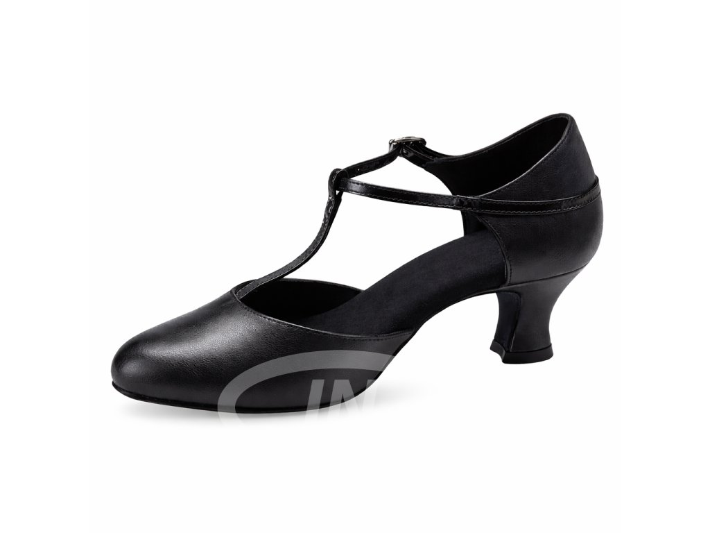 Dámské taneční boty s podpatkem 5 cm jsou vyrobeny z černé kůže.